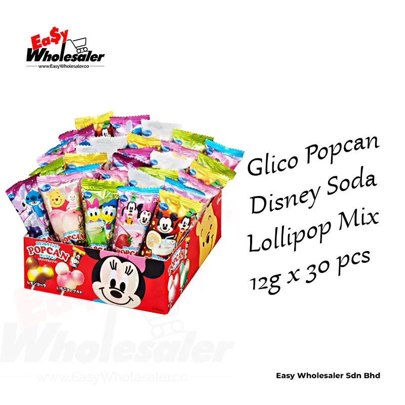 Glico Popcan Disney Soda Lollipop 12g is a delightful treat featuring Mickey Mouse-shaped lollipops wrapped in colorful packaging, each representing a different Disney character. When licked, these lollipops dissolve into a refreshing and fruity drink. Kids will enjoy the fun flavors and cute Disney characters, while parents appreciate the easy way to encourage hydration. It’s the perfect treat for any occasion! 🍭🥤🪄✨