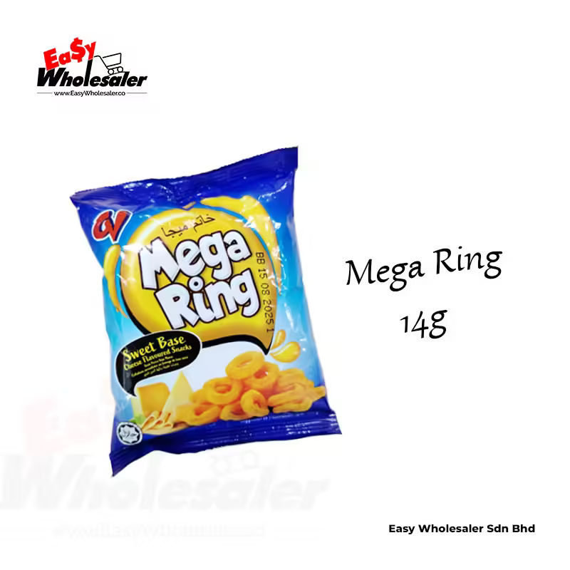 The Mega Ring 14g is a savory, crispy snack featuring rich cheese flavor in a golden, crunchy ring. Perfect for any occasion, it offers a satisfying crunch whether enjoyed alone or with beverages. This snack is ideal for parties, picnics, or home snacking, making it a favorite among cheese lovers and snack enthusiasts.